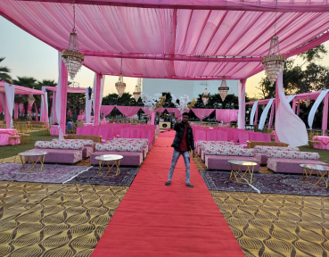 Lawn 1 is where open-sky charm meets thoughtful hospitality. Designed for celebrations that breathe, this carefully manicured outdoor space offers an elegant yet relaxed setting for weddings, sangeet nights, mehendi functions, family gatherings, and corporate socials. Surrounded by soft greenery and open horizons, it creates a naturally beautiful canvas that enhances every theme, from rustic floral to royal traditional. As the day melts into evening, gentle lighting turns the space into a glowing celebration zone, perfect for capturing memories under the sky.